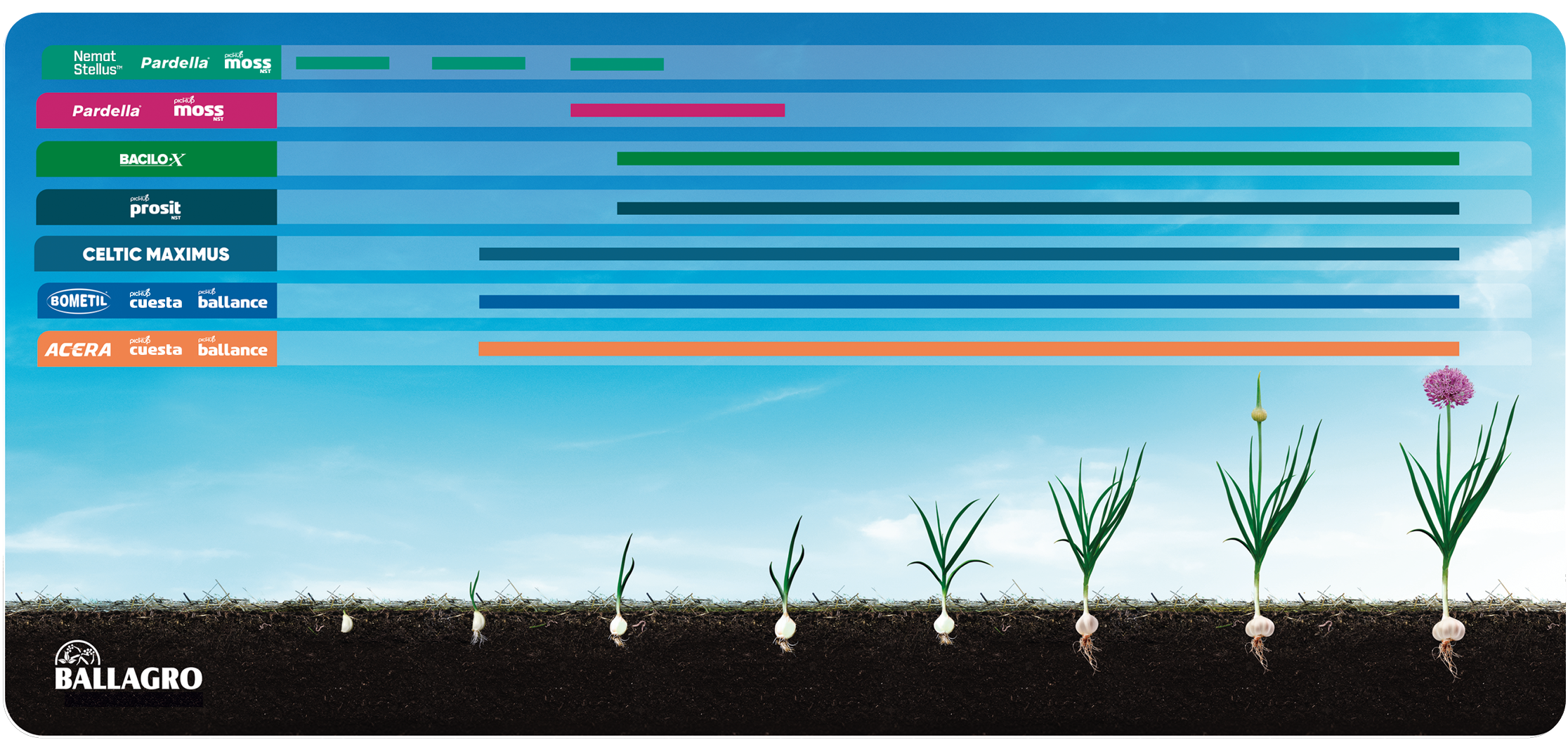 Melhora a formação do alho, oferecendo melhor qualidade pós-colheita. |