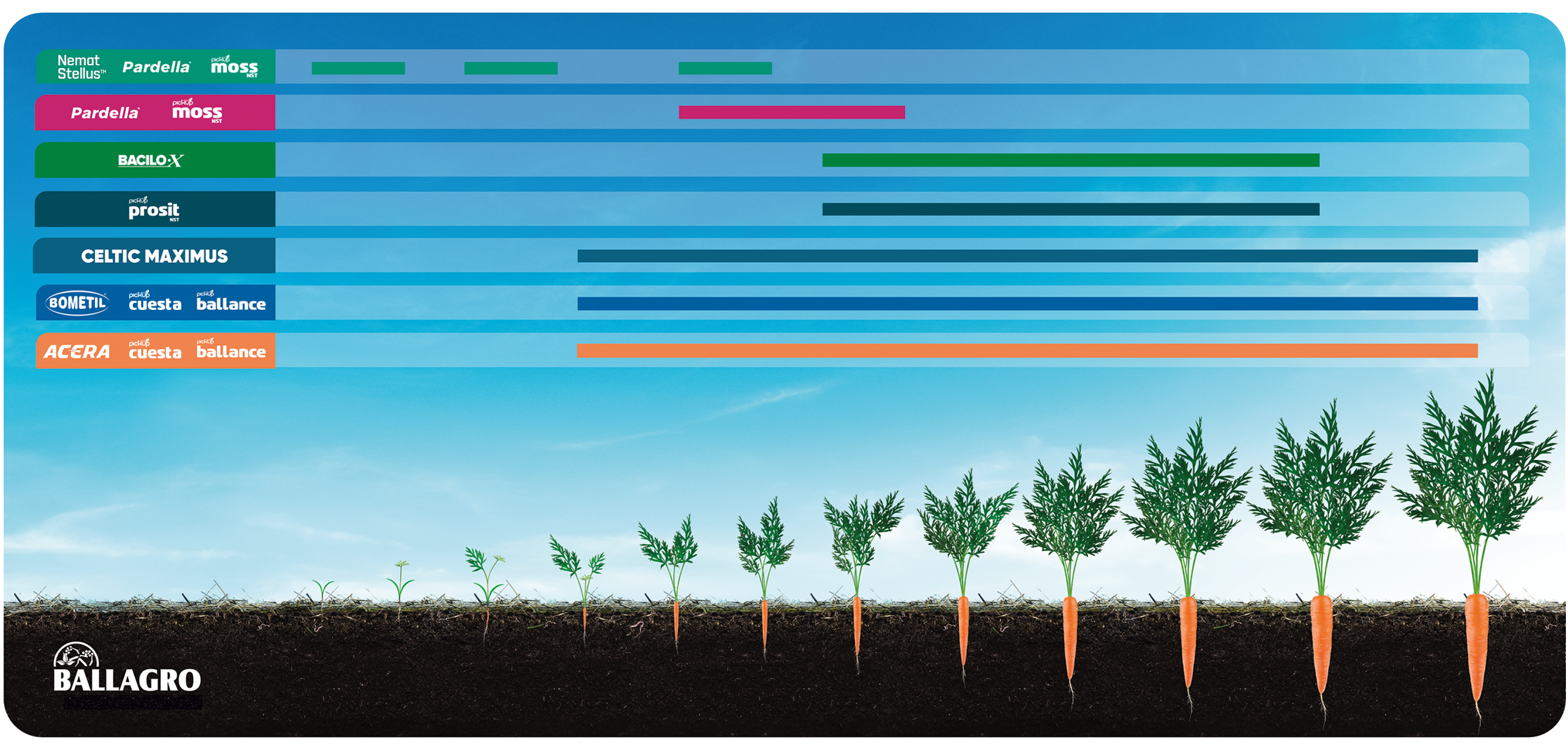 Melhora a formação da cenoura, oferecendo melhor qualidade pós-colheita.